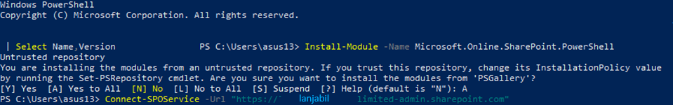 - Install-Module -Name Microsoft.Online.SharePoint.PowerShell