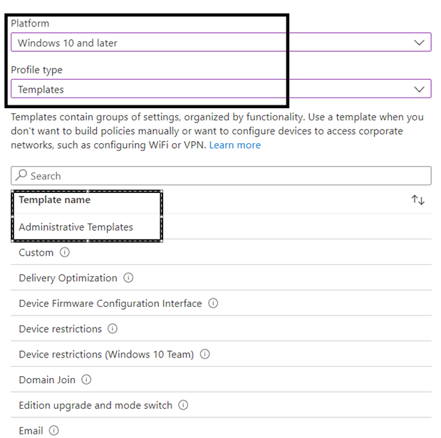 Step 2. Open Intune & Go to Devices and select “Configuration Profile” & Create Profile.