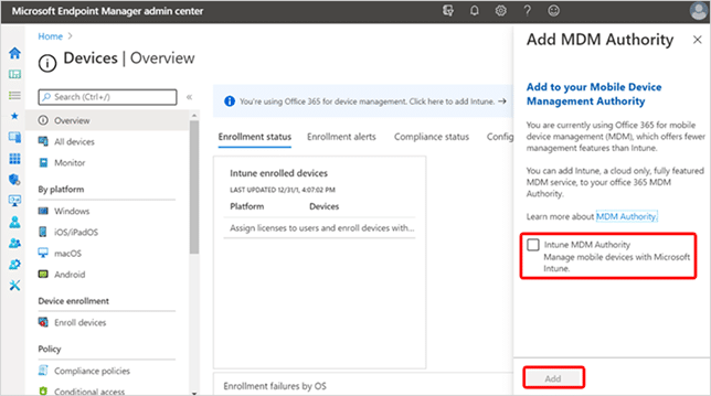 If you want to change MDM Authority from Microsoft 365 to Microsoft Intune, you need to open this link and check the Intune MDM Authority option.