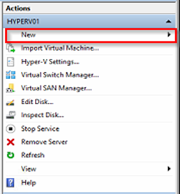 In the right-hand Actions pane, click New, then Virtual Machine to start the wizard