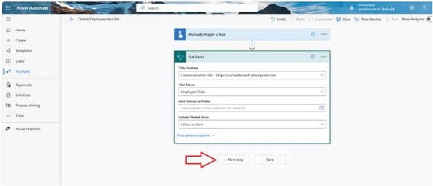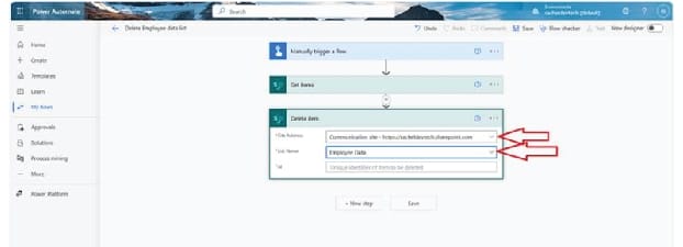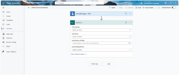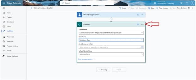 On Get items, select the SharePoint site address by clicking on the drop-down icon and select the SharePoint site your list is created in. Next, select the list name.