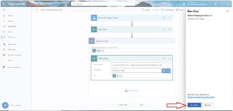 Click on Continue and then click on Run flow