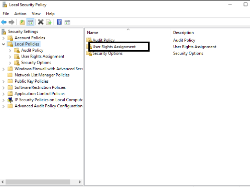 3. In Local policies,open User Rights Assignment.