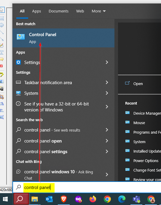 1. Press Windows + S to open Search Box and type Control Panel, click it to open.