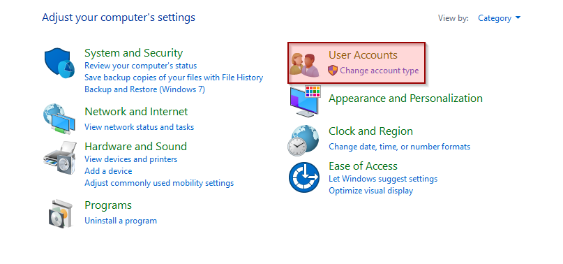 2. Click User Accounts.