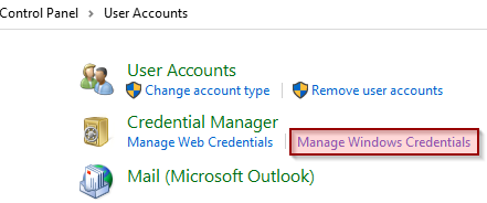 3. Click on Manage Windows Credentials under Credential Manager.