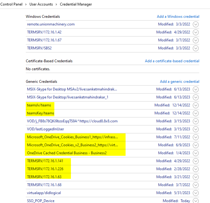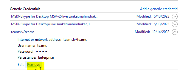 5. Under Generic Credentials, remove all the log-in credentials.